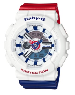 Mention the red, white and blue, art fan girl may think of director Kieslowski's "red, white and blue trilogy"; romantic girl may yearn for "red white blue" tricolor flag fluttering France; college girl May be said that red and white blue symbol of freedom and equality fraternity. This summer, whether you are literary Fan, romantic or academic girl, can easily find their favorite in the BABY-G Tricolor tricolor flagship series! BABY-G summer launch three new BA-110TR-7A , BA-120TR-7B, BGA-185TR-7A, the classic best-selling watch as a prototype, red, blue and white wanton match, so tough enough cool you and bloom with the summer blooming!