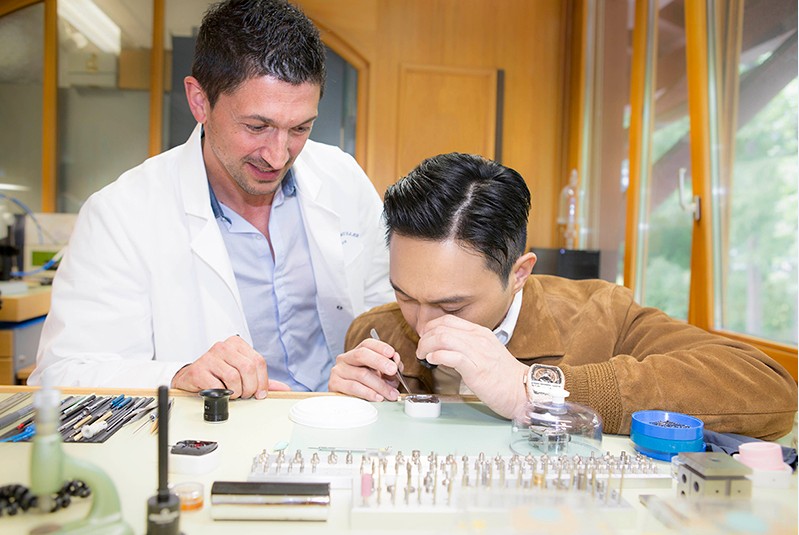 Under the guidance of Patrice Couston, Tourbillon's lead watchmaker, Tseng Chi-lin challenges the assembly of the Vanguard Gravity watch. After personally completing the assembly, Julian Zhang marveled at the complexity and difficulty of completing a watch. Sincerely, Franck Muller watches are not only beautiful objects in the wrist, but also worthy collection of art pieces.