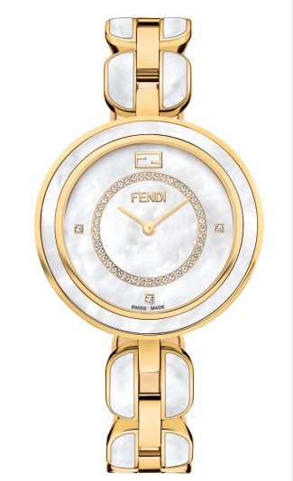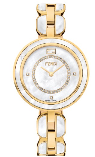 The elegant charm of the new Fendi My Way comes from its extraordinary two-tone contrast: mother of pearl with gold-colored stainless steel or a new generation of black ceramic with gold-colored stainless steel.