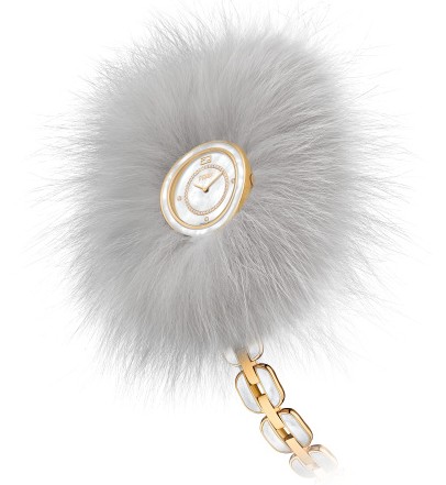 Famous Arctic fox fur Glamy (Grammy) feathers by the FENDI fur studio masters crafted hand crafted, make this series even more lasting elegance, which by virtue of extraordinary charm, in order to show more Fluent, more casual appearance, fur is completely removable, so that the watch was originally pure and elegant lines revealed undoubtedly.