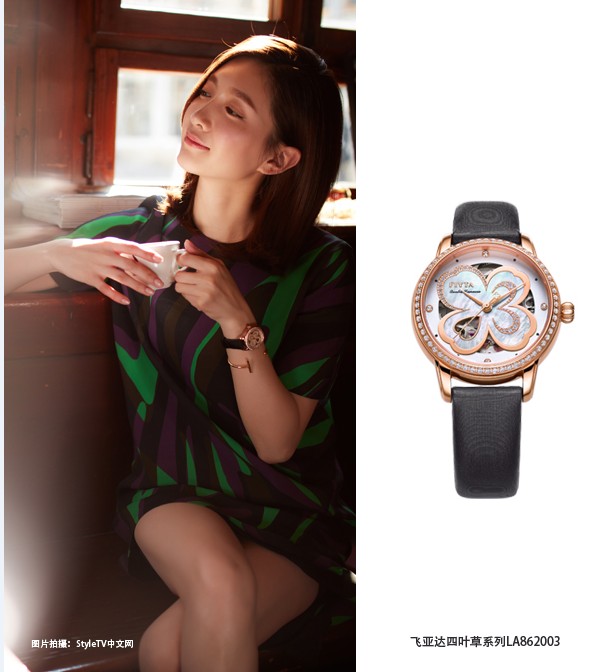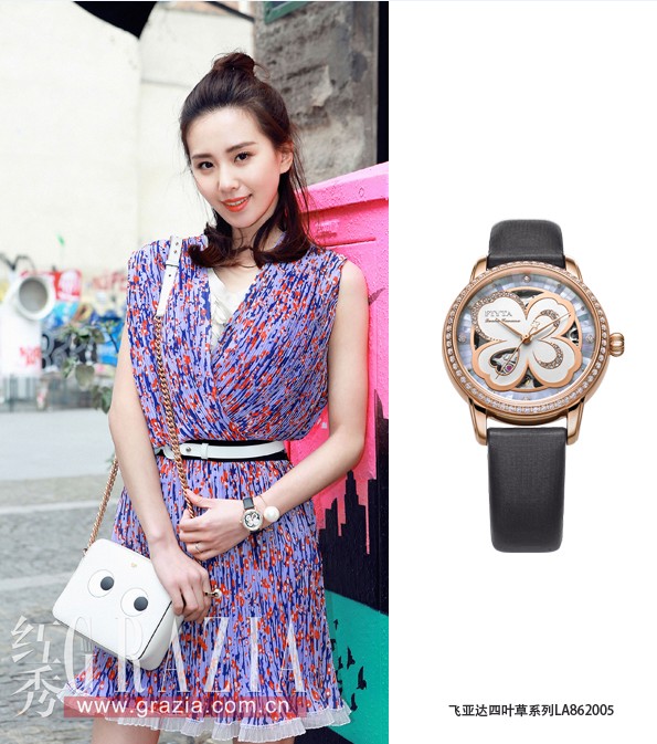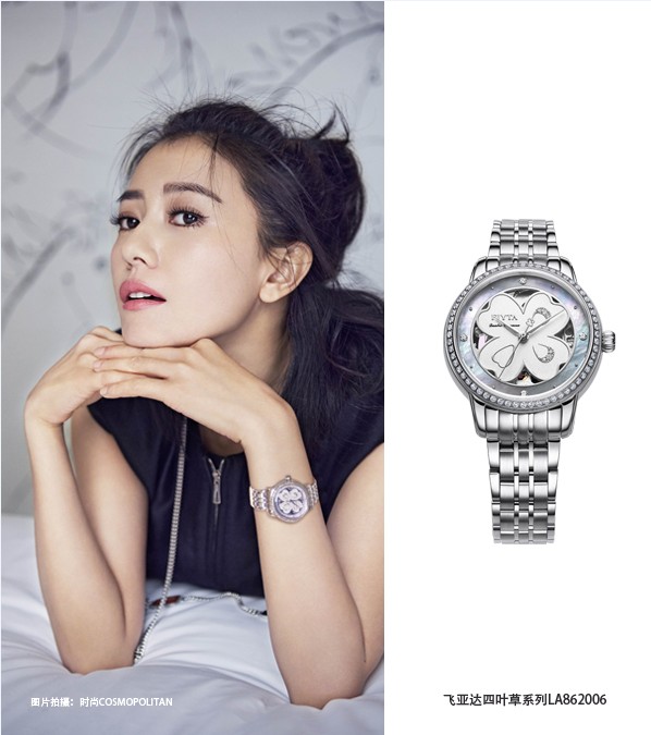 Dial: talk about blue stitching motif hollow clover shape, silver sand
