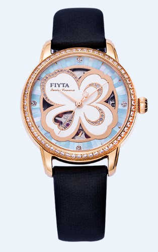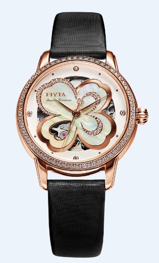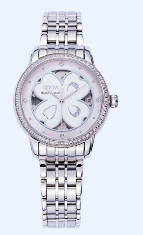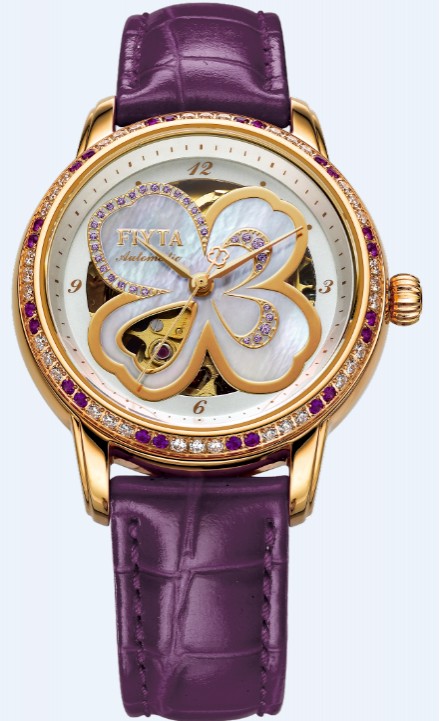 Dial: pink mother of pearl hollow four-leaf clover shape, silver sand