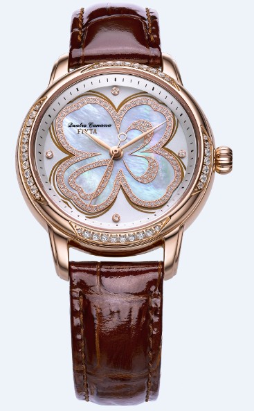 Crown: stainless steel, IP plated rose gold, four-leaf clover pattern