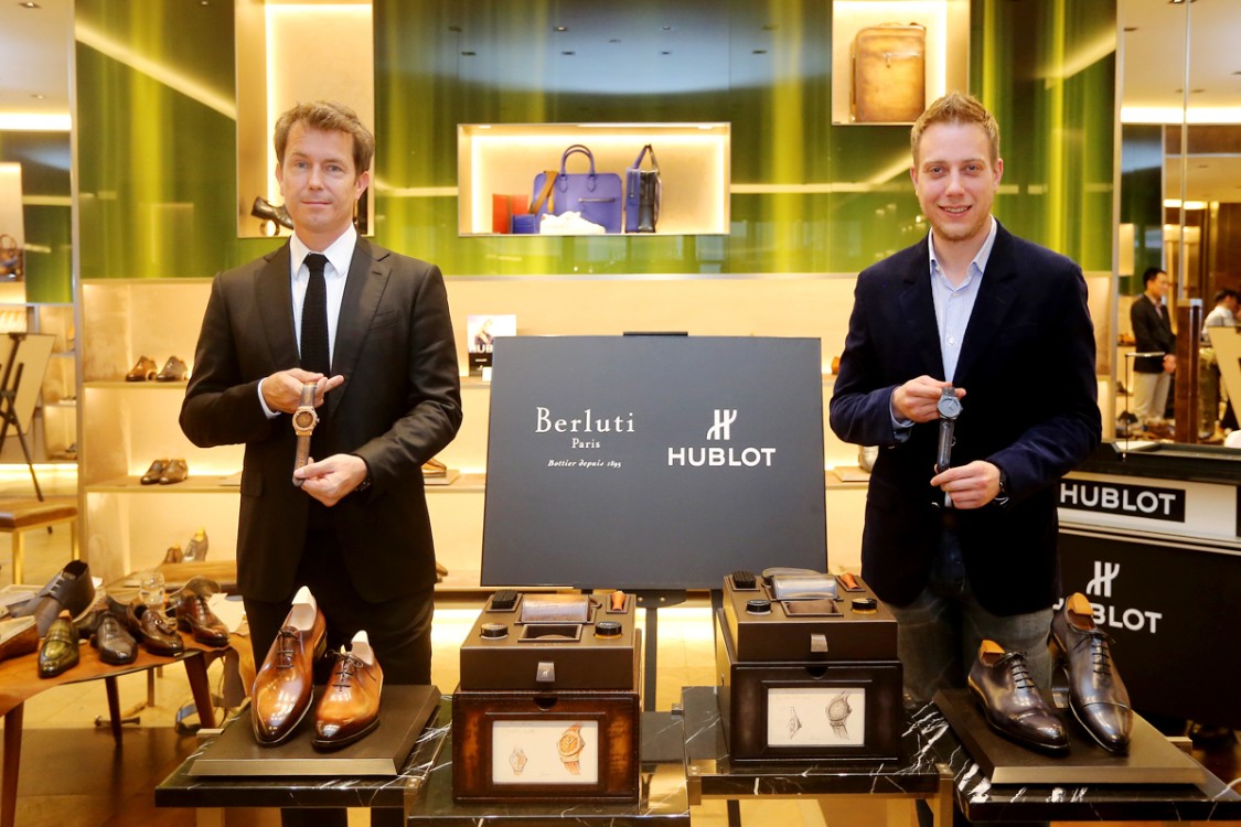 Louis Beaver (right), General Manager, Hublot Greater China, and Yves Coppin, Managing Director, Asia and China, Berluti (left), released the Berluti Classic Fusion