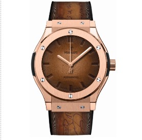 HUBLOT, Switzerland's leading watch brand, embodies the art and time of the messenger, connecting the past and the future, combining traditional and modern art, hand in hand with the century-old Parisian footwear family Berluti glory released classic fusion Berluti watch, cross-border interpretation of "fusion the art of". The two cooperation watches in the use of exquisite watchmaking process at the same time combines the Berluti classic Venezia leather and the world-famous Patina craft, in order to make the best of craftsmanship will be the essence of two traditional craftsmanship into one, elegant writing extraordinary style, to create gentleman elegant.