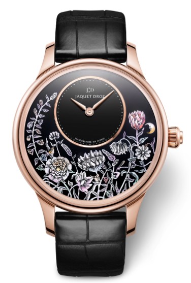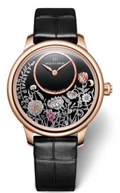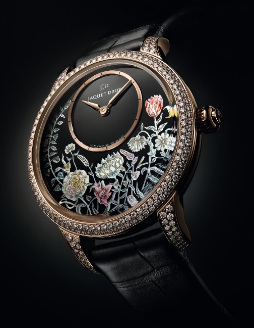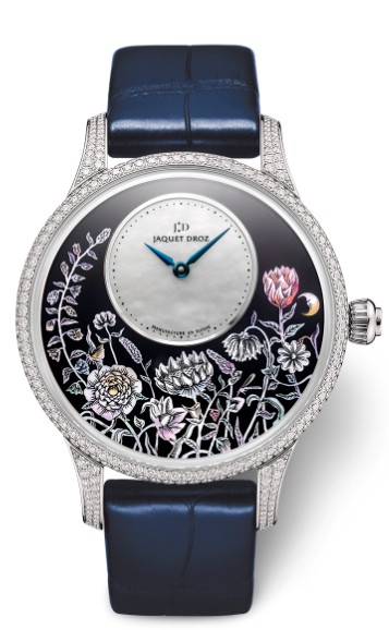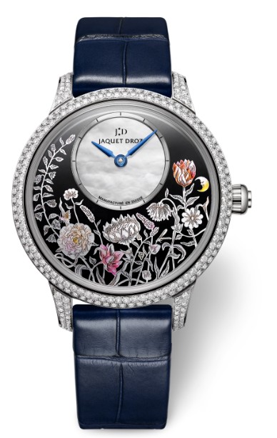 Warm and sweet dreams: elegant and charming flowers bloom in the dial - Jaquet Dero onyx mother of pearl hours small dial series