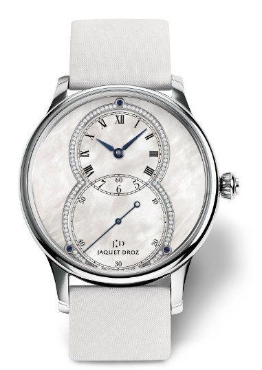 Jaquet Deroz elegant sun stone 8 watch with a unique mild curve design reflects the femininity, 8 symbolizes the infinite and successful. The design on the front has both the sparkling appeal of jewelery and the sparkling charm of jewelry that will make all ladies catered for it. The bezel surrounds the drill string, highlighting the exquisite curves of the watch, presenting a simple, refined beauty. The extension of the crown makes the case more rounded and full, while the curved crystal mirror, dial and pointer further demonstrate this three-dimensional effect of the timepiece.