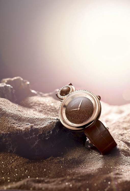 In 2015, Jaquet Deroz launched Sunstone, a new member of the family of sapphires, to continue this aesthetic exploration. The Sun Stone has a unique brilliance. Its inner gold leaf shines in magical dazzling brilliance, reminiscent of the sparkling light of stars of the ancient wisdom and stars of gods, as if containing the magic of the sun and the gold of Venice The ultimate elegance of the century rhyme.