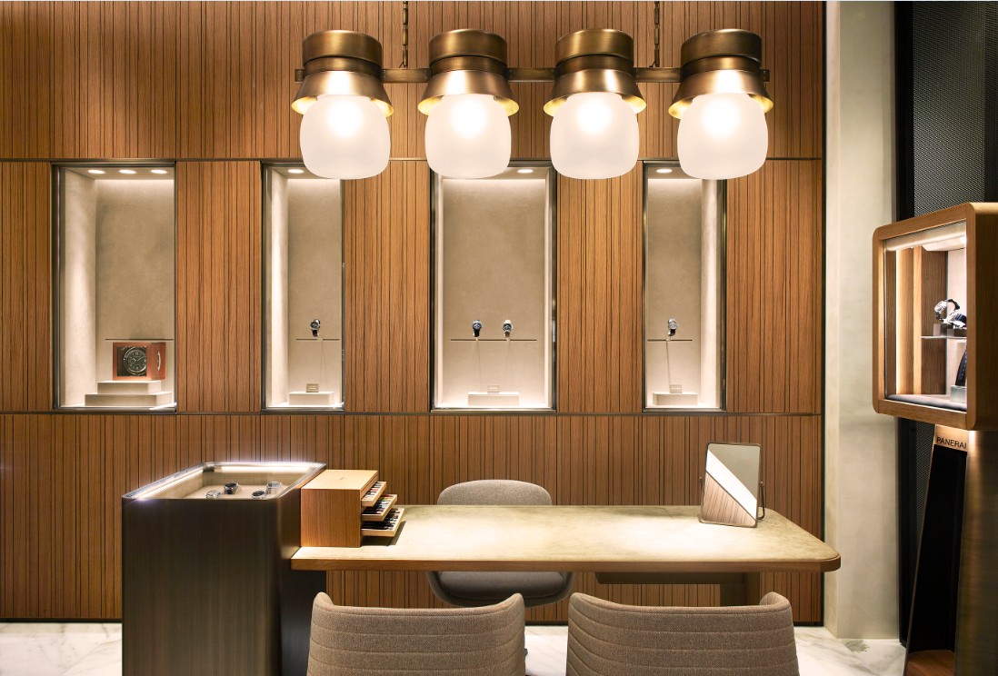 The atmosphere of the store is friendly and elegant, with contemporary features. Panerai customers can taste the technical aesthetics contained in watch, while enjoying the time in a comfortable and intimate environment. Store and set up a separate space for watch collectors to enjoy a unique VIP experience.