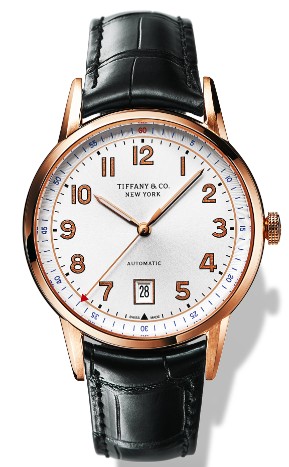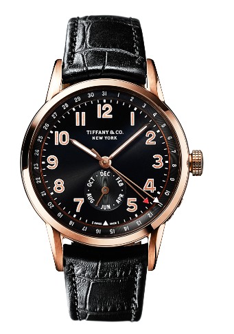 2.Tiffany CT60 Series 40 mm limited edition calendar watch, 18k rose gold case, crocodile leather strap